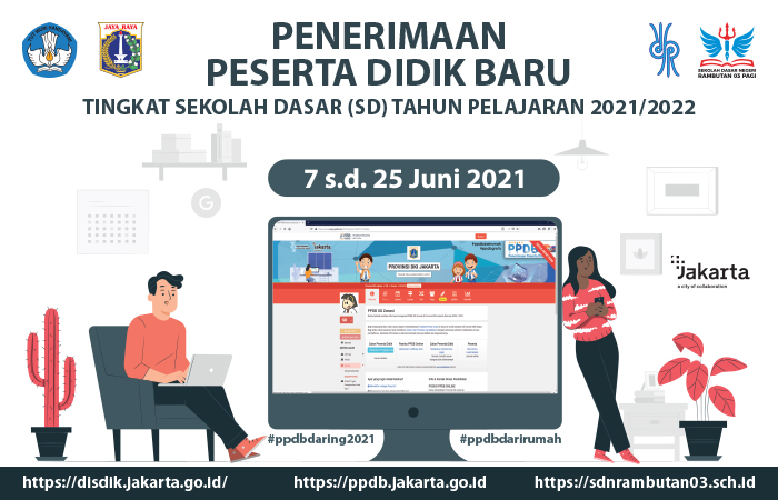 | Tema | : | Penerimaan Peserta Didik Baru Tingkat Sekolah Dasar Tahun Pelajaran 2021/2022 dilaksanakan secara Daring. Orang Tua Calon Peserta Didik Baru dapat menghubungi panitia PPDB melalui : Nomor Whatsapp : 0878-8575-2162, 0856-9741-3331, 0822-1071-5696 Nomor Telepon : 021-8408127 & 021-22854917 Website dan Media Sosial Sekolah. |