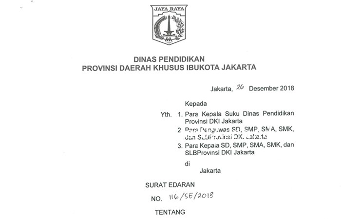 Menindaklanjuti Peraturan Gubernur Nomor 9 Tahun 2012 tentang Tata Cara Perpindahan Peserta Didik, dengan ini saya minta perhatian Saudara hal-hal sebagai berikut.
